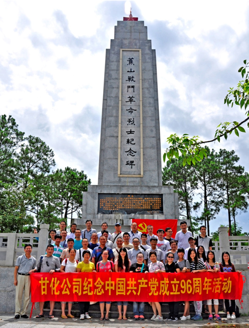為紀念中國共產黨建黨96周年,并進行愛國愛黨愛崗教育,2017年7月1日上午,甘化公司黨委組織本部和子公司全體黨員到新興蕉山革命烈士陵園,開展了“不忘初心,牢記宗旨”主題黨日活動,重溫入黨誓詞,以莊嚴神圣的方式慶祝黨的生日。