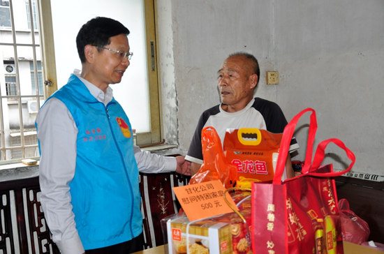 甘化黨員守初心,關(guān)愛活動(dòng)暖人心1月10日下午,公司黨委書記方小潮在甘化社區(qū)黨委人員陪同下,開展關(guān)愛轄區(qū)困難黨員、困難群眾“送溫暖”主題黨日活動(dòng)。方書記一行上門走訪慰問了4戶原甘化困難黨員、1戶困難群眾,詳細(xì)了解他們家庭人員身體狀況和生活狀況,致以誠(chéng)摯的節(jié)日問候,勉勵(lì)他們?cè)鰪?qiáng)信心,早日戰(zhàn)勝困難,并每戶送上了500元慰問金和大米、食油和餅干等節(jié)日禮品。他們都很感動(dòng),連聲道謝;有的還熱淚盈眶,激動(dòng)地說,“您們真好!”通過活動(dòng),讓煎熬中的困難家庭感受到來自于企業(yè)和社會(huì)的關(guān)愛。