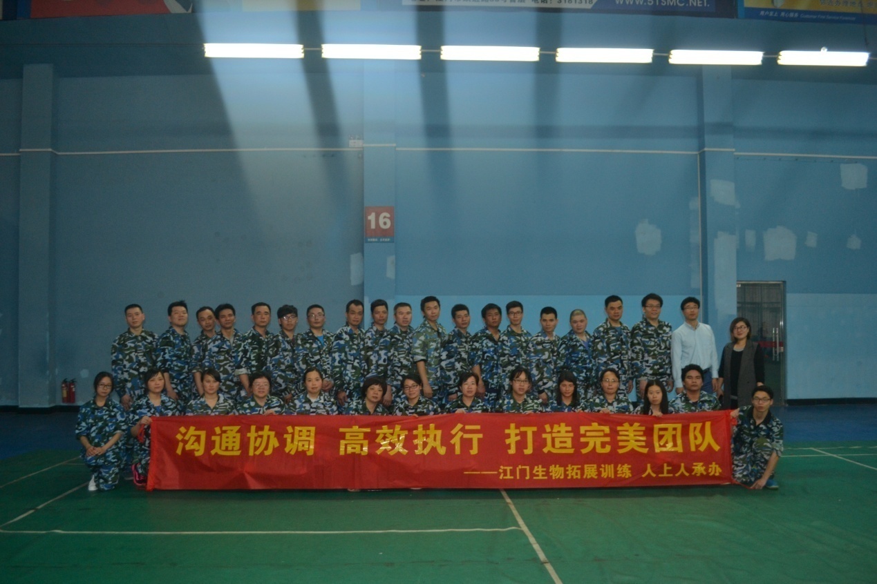 為加強團隊凝聚力、執行力、溝通能力和協作意識,2016年3月31日,生物中心在江門市迎賓大道新英羽毛球館組織了一場員工戶外拓展訓練。分別進行了鼓顛球、沙場點兵、摸數字和電網越獄四個項目拓展。每個項目,都需要經過團隊討論、執行、總結,每完成一個項目,都加深了大家對“團隊合作”的理解。32位隊員身穿迷彩服,揮灑智慧和汗水奮進攻堅,完美地詮釋了精誠團結、堅持不懈的精神!