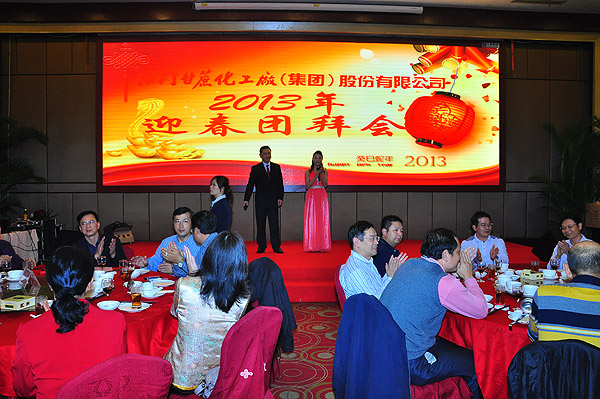 緊接著,在熱烈的掌聲祝福中,甘化公司董事長(zhǎng)兼總裁麥慶華先生以及各公司高管進(jìn)行頒獎(jiǎng),對(duì)股份公司及德力光電的優(yōu)秀員工、生物中心的先進(jìn)管理者和先進(jìn)工作者進(jìn)行表彰。然后,公司領(lǐng)導(dǎo)集體上臺(tái)敬酒。隨著禮炮響亮地鳴放,萬(wàn)眾期待的團(tuán)拜晚宴正式開(kāi)始了!