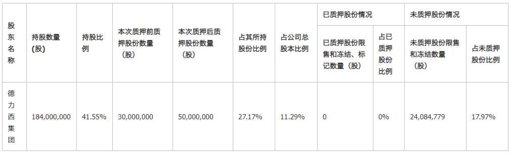 廣東甘化科工股份有限公司(以下簡稱“公司”)于近日接到控股股東德力西集團有限公司(以下簡稱“德力西集團”)通知,獲悉其所持有本公司的部分股份被質(zhì)押,具體事項如下: